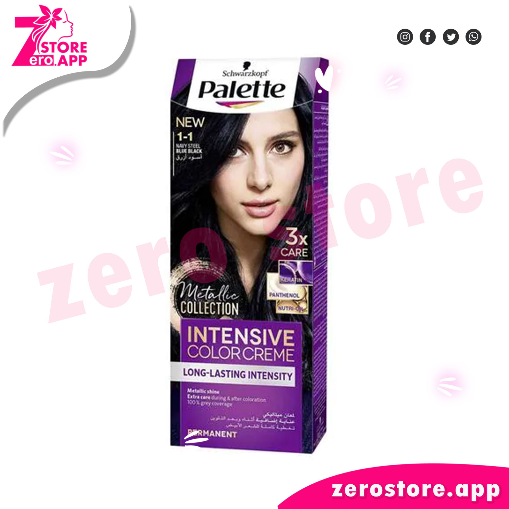 باليت كريم صبغة مركزة باللون الأسود الأزرق (1-1) هو منتج آخر يستخدم لصبغ الشعر. يحتوي هذا المنتج على تركيبة مركزة من الأصباغ اللونية التي تضفي لونًا أسودًا مع لمعان أزرق خفيف على الشعر. يمكن استخدامه لتغطية الشعر الرمادي أو لتجديد اللون الأسود الداكن للشعر.