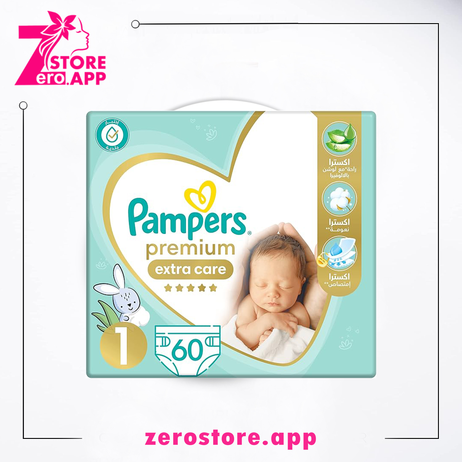 بامبرز حفاضات اكسترا كير بريميوم باللوشن والالوفيرا، مقاس 1، 2-5 كجم - 60 حفاضة