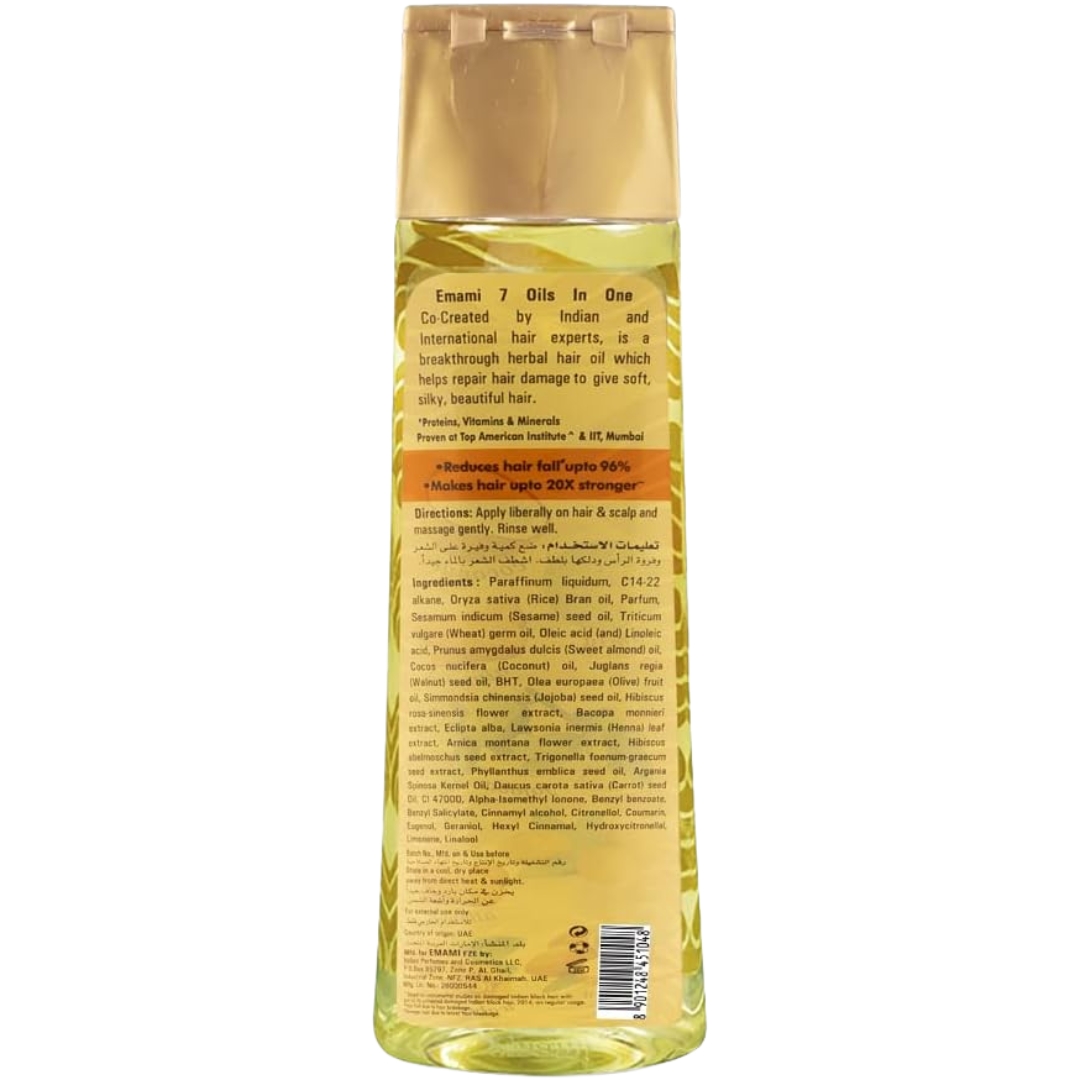 7 زيوت في زيت واحد لمقاومة تلف الشعر غير مثبت من ايمامي هو تركيبة فائقة الخفة مصنوعة من الفوائد الصحية لـ 7 زيوت فريدة. يرطب زيت الأرجان الشعر ويجعله ناعمًا ولامعًا. زيت الجوز الغني بالبوتاسيوم يجعل الشعر أقوى وأكثر صحة. يحتوي زيت اللوز على فيتامينات مثل A وB وD وE التي تعمل على تجديد الشعر وتنعيمه مما يجعله ينمو بقوة وصحة. زيت جوز الهند الغني بالمعادن والبروتينات يرطب الشعر ويعالج تلف الشعر ويحافظ على فروة الرأس خالية من القشرة. زيت املا الغني بفيتامين سي والمعادن يمنع تخفيف الشعر والشيب المبكر ويعزز نمو الشعر. زيت الزيتون الغني بمضادات الأكسدة والمعادن يغذي جذور الشعر ويعزز نموه ويحارب قشرة الرأس. يساعد زيت الجوجوبا على الاحتفاظ بالرطوبة والمغذيات داخل الشعر، مما يمنع تساقط الشعر ويحمي من التلف الخارجي. أثبتت هذه المكونات الغنية أنها تجعل الشعر أقوى من الداخل، مما يمنحه القوة للبقاء ثابتًا طوال اليوم.