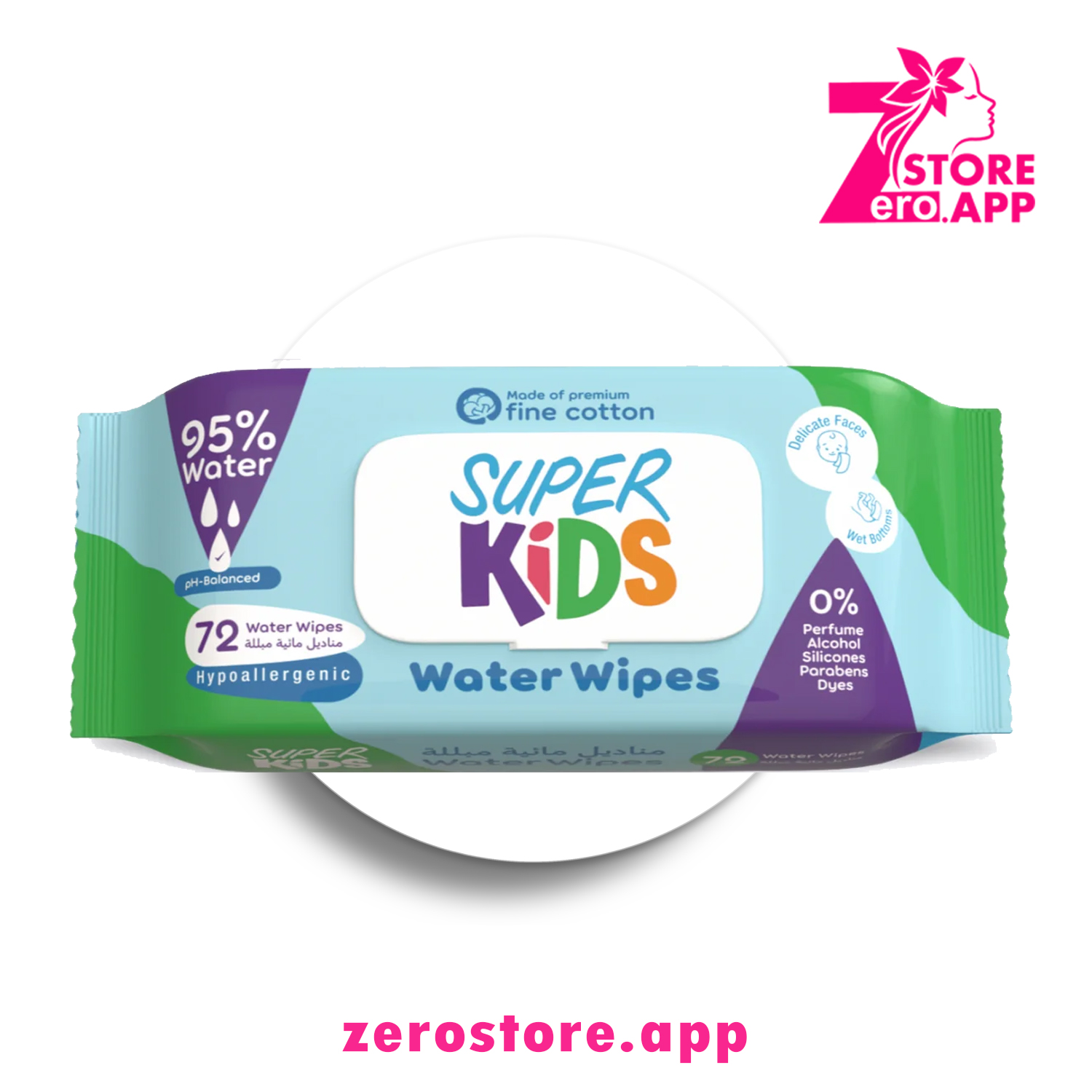 تحتوي مناديل سوبر كيدز المائية على 95% من الماء. مصنوع من مزيج طبيعي من منظفات البشرة مع خصائص ترطيب وترطيب، تم تركيبه خصيصًا لبشرة الأطفال حديثي الولادة