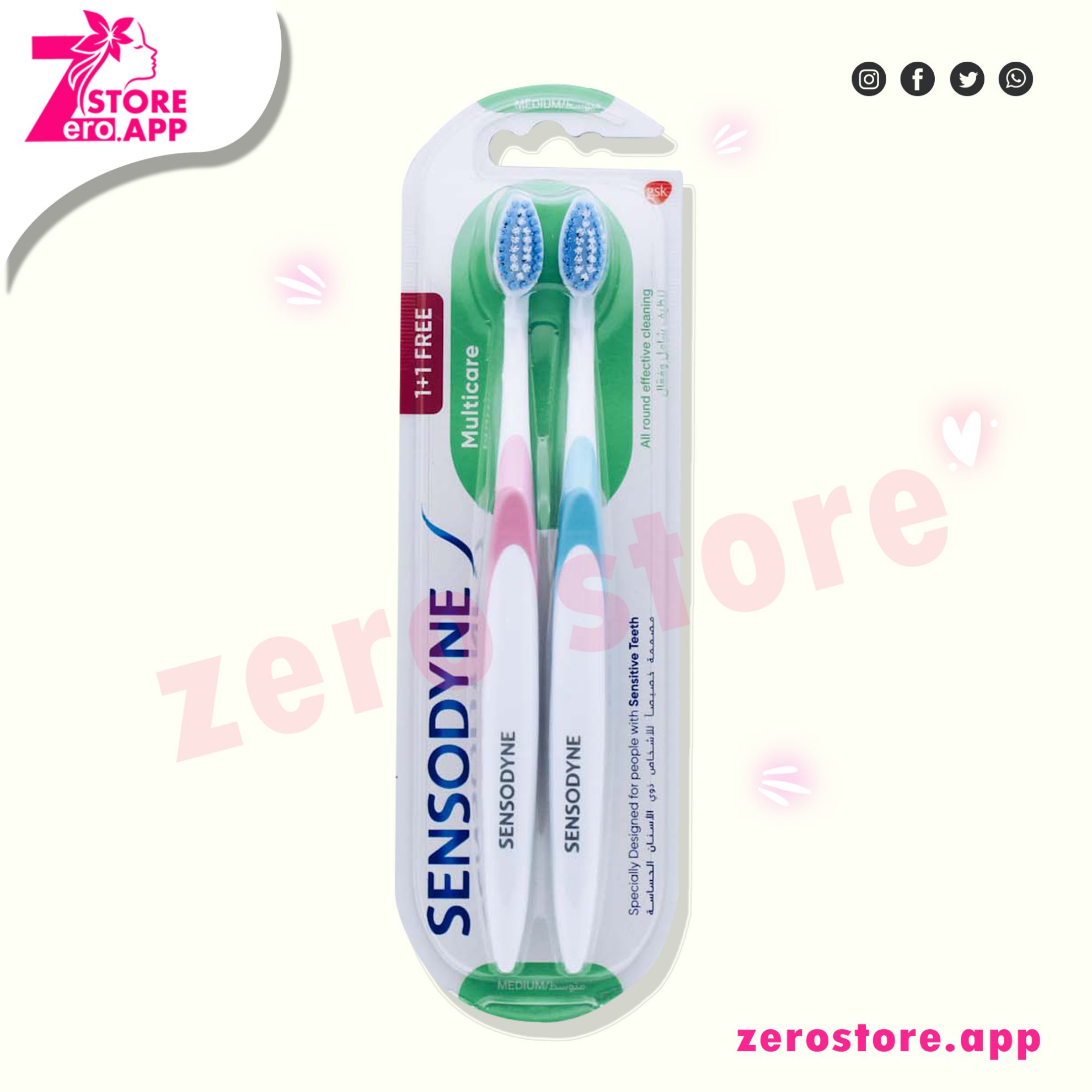 سنسوداين مالتي كير فرشة أسنان متوسطة 1+1 هي فرشاة أسنان تستخدم لتنظيف الأسنان واللثة وإزالة البلاك والرواسب. تتميز بشعيراتها المتوسطة التي تساعد على تنظيف الأسنان بشكل فعال دون تسبب أي تهيج أو إصابة للثة.