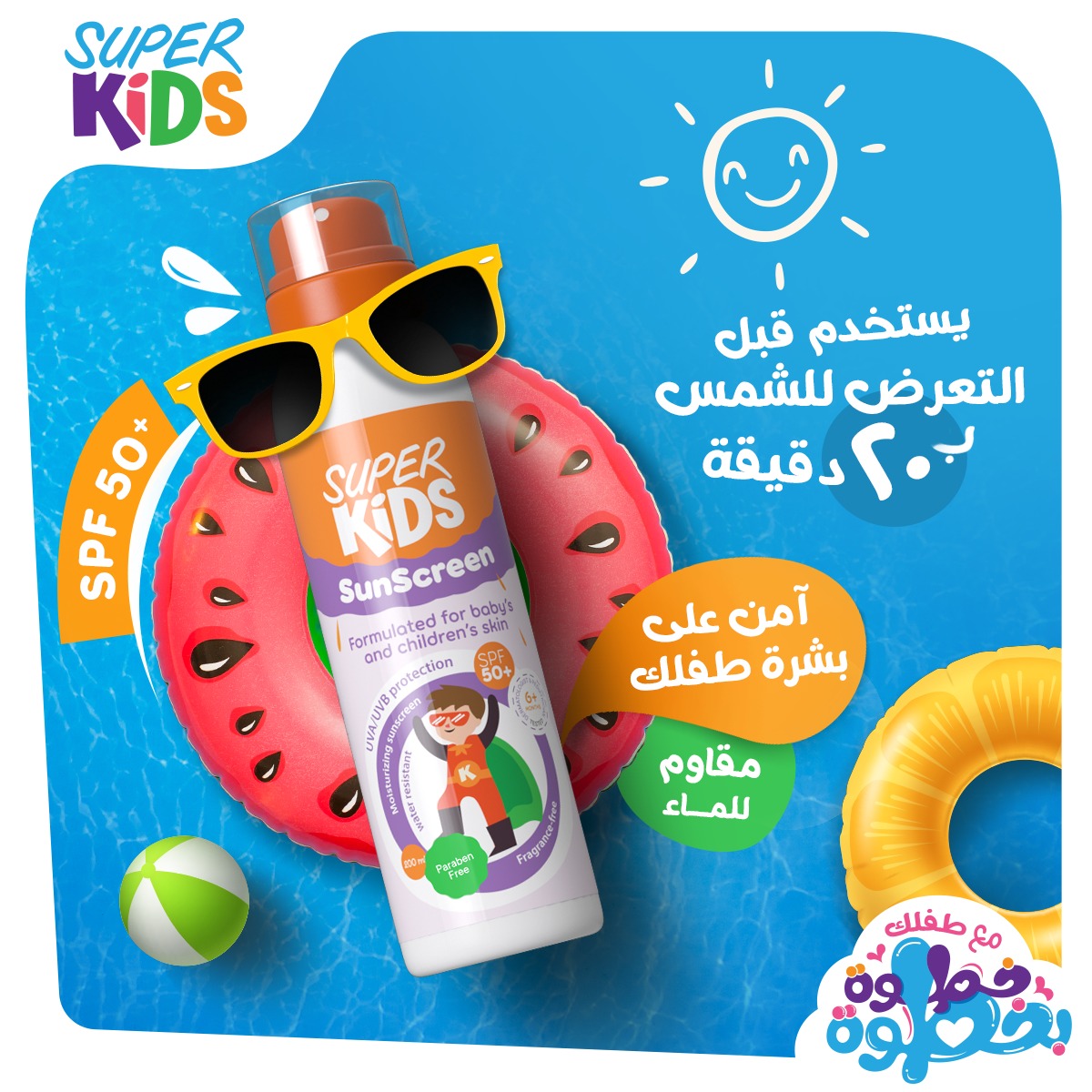 احمِ بشرة طفلك الحساسة من الآثار الضارة للشمس باستخدام لوشن Super Kidz Sunscreen Lotion مع عامل حماية من الشمس بدرجة 50. حجمه الملائم يجعلها مثالية للاستخدام أثناء التنقل ، كما أن تركيبته اللطيفة آمنة للاستخدام اليومي. قم بتخزينه في مكان بارد وجاف بعيدًا عن الأطفال ، واستمتع براحة البال التي تأتي مع معرفة أنك تستخدم أفضل منتج لاحتياجات طفلك من الحماية من أشعة الشمس.