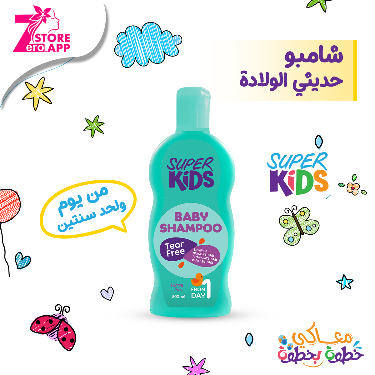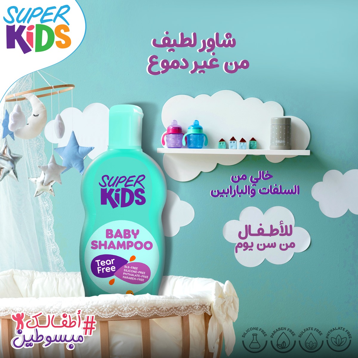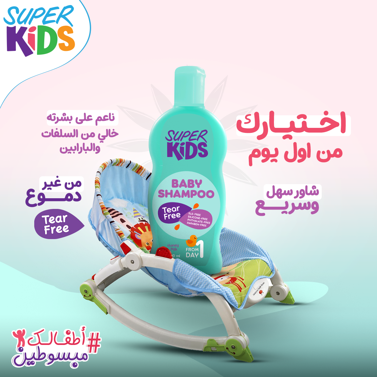 من اول يوم في حياتهسوبر كيدز شامبو للأطفال من غير سلفات أو بارابينهيخلي وقت الشاور بتاعه لطيف ومن غير دموعسوبر كيدز بيبي شامبو آمن على بشرة طفلك الرقيقة ومش بيسبب حساسيةلفروة الرأساستخدميه من عمر يوم ولحد سنتينوخلي أطفالك علطول مبسوطين