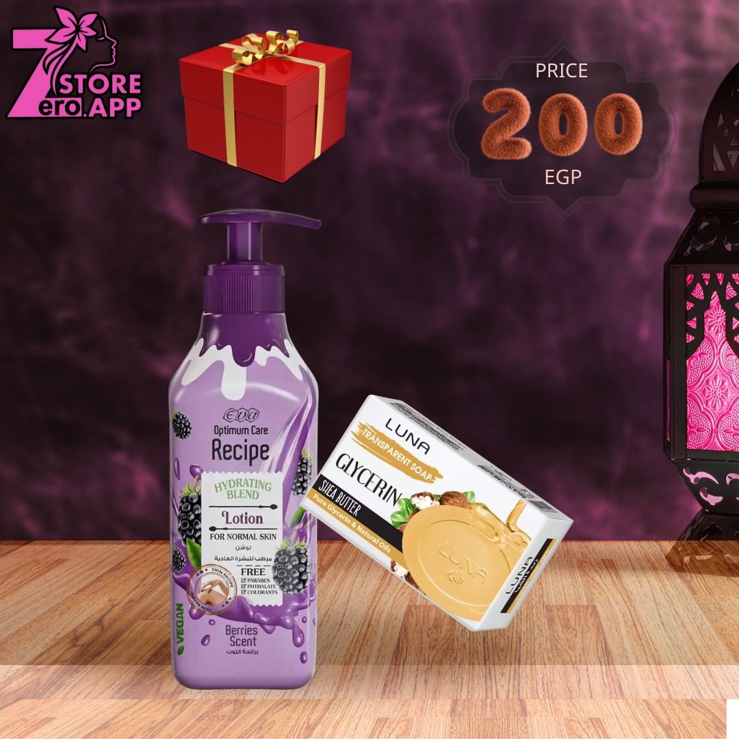 ١- ايفا ويسلى لوشن برائحة التوت 370مل ٢- لونا صابون جلسرين 72 جم