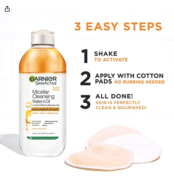 منظف الكل في واحد للوجه والعينين والشفاه بزيت الأرغان: يزيل المكياج المقاوم للماء وينظف ويهدئ جميع مناطق الوجه بقطعة قطنية واحدة. مناسب لجميع أنواع البشرة، حتى الحساسة. تم اختباره من قبل أطباء الجلدية والعيون. غير دهني، غني بالمذيلات، وزيوت فعالة لإزالة المكياج وزيت الأرغان، يزيل المكياج المقاوم للماء ويلتقط الأوساخ والتلوث بحركة واحدة. تقدم غارنييه تقنية ميسيلار تم تركيبه من ميسيلات تلتقط الأوساخ والدهون والتلوث والمكياج اليومي من بشرتك مثل المغناطيس وتزيله بسهولة.