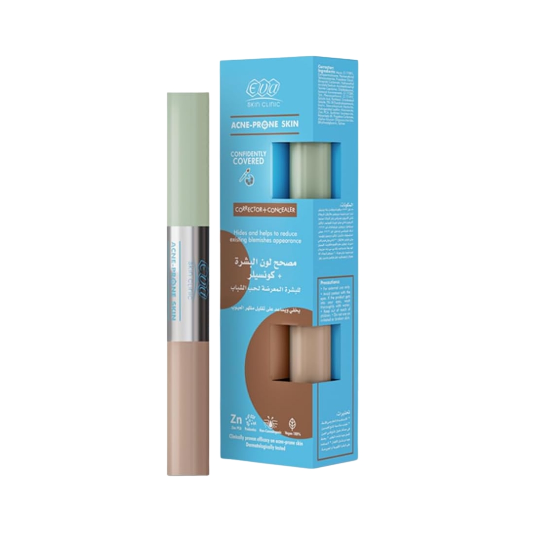 كونسيلر + مصحح للبشرة المعرضة لحب الشباب من ايفا سكين كلينك، 2 × 5 مل، شفاف