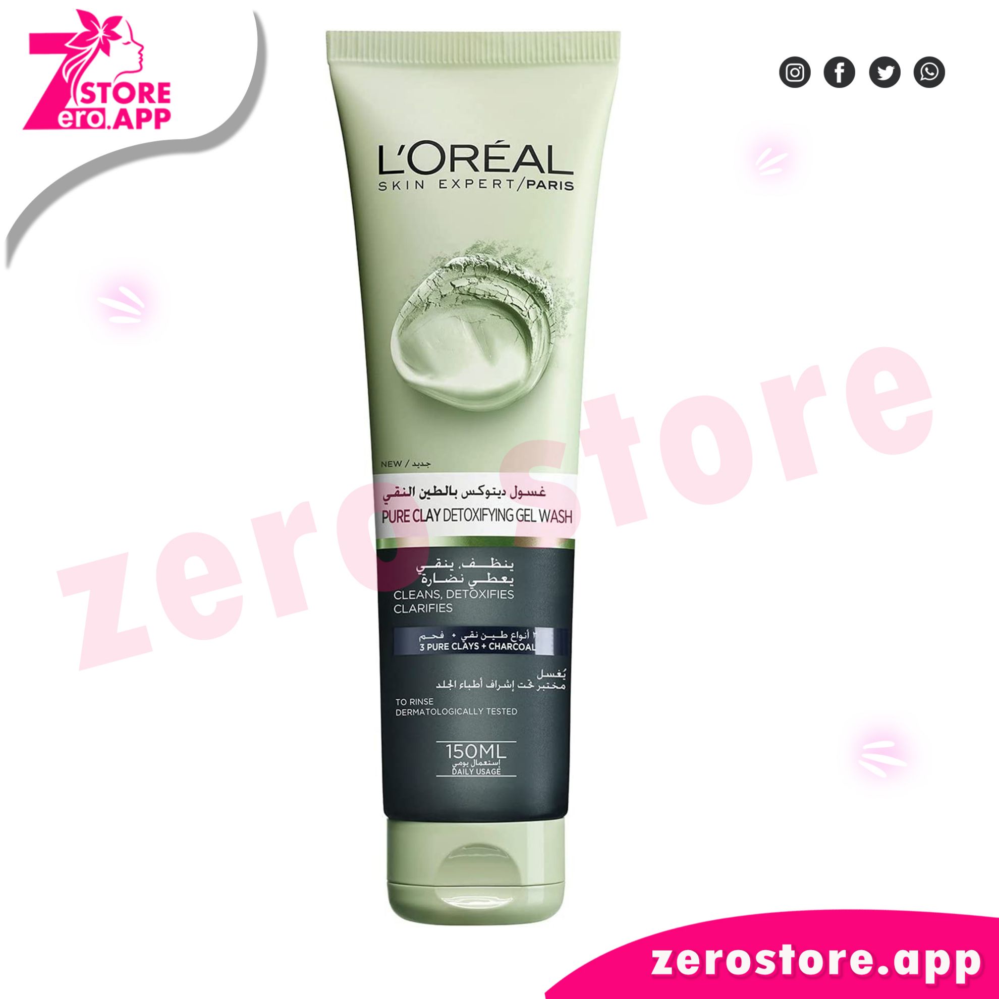 لوريال باريس منظف الوجه بيور كلاي بلاك بالفحم، يزيل السموم ويبيض، 150 مل