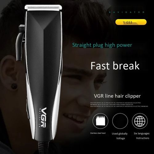 ماكينة حلاقة V-033 من ماركة VGR الشهيرة، ماكينة 9 واط عملية وسهلة الاستخدام معاها 4 أمشاط بمقاسات متنوعة للتحكم في حلاقة الشعر والدقن بدقة، بيجي معها مقص ومشط تسريح و زيت للحفاظ على عمر أطول للشفرة.• *المميزات*• ماكينة الحلاقة من ماركة VGR المعروفة عالمياً• الماكينة فعالة في حلاقة شعر الرأس والدقن بدرجات مختلفة• ماكينة شخصية للحلاقة، تضمن لك أعلى درجات الأمان والحماية من الأمراض والعدوى• شفرات الماكينة مش بتسبب أي نوع من الالتهاب للبشرة، آمنة للبشرة الحساسة• في زرار مخصوص تقدر تتحكم منه في طول الشفرة بمنتهى السهولة• ماكينة الحلاقة بتيجي معاها كل الكماليات اللي هتاحتجها عشان تحلق في البيت• معاها 4 أمشاط بمقاسات متنوعة (3/6/9/12 mm)• معاها مقص ومشط تسريح• مع الماكينة زيت مخصوص للشفرة بتتلمع بيه كل 3 أو 4 مرات من الاستخدام• ومعاها فرشاة لتنضيفها بسهولة• بتتميز الماكينة بموتورها القوي و وزنها الخفيف• تصميم الماكينة بسلك طويل جداً لتوفير استخدام سهل وتحرك حر• شفرات الماكينة ضد الصدأ من الستانلس ستيل